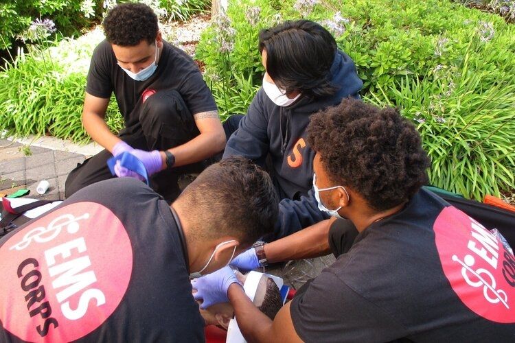 The EMS Corps is a highly selective, rigorous academy that trains aspiring emergency medical professionals who are from the community and ready to serve. It is a paid (stipend) program whose mission is to increase the number of underrepresented workers in emergency medical services through youth development, mentorship, and job training.